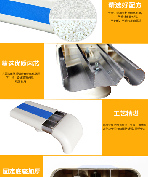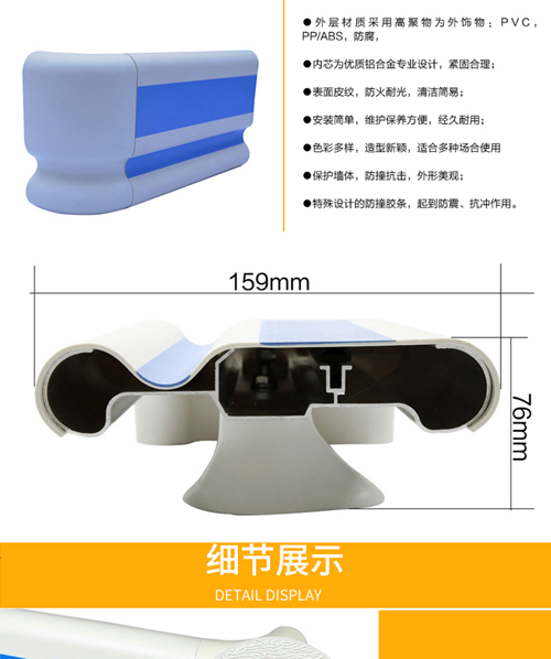 河北凱茂生產(chǎn)的防撞扶手、護(hù)墻板、防撞護(hù)角、樓梯止滑條、無障礙扶手、吊桿隔簾軌道等產(chǎn)品,已廣泛應(yīng)用于醫(yī)院、養(yǎng)老院、學(xué)校、老年公寓、酒店和其它公共場所,歡迎新老客戶長期合作。 產(chǎn)品型號:159款防撞扶手 產(chǎn)品材質(zhì):外PVC2mm厚,鋁材厚度有1.4mm/1.88mm,特殊顏色可訂制。 產(chǎn)品包裝:5米一根,50米一件。 河北凱茂新型材料有限公司是一家集生產(chǎn)、研發(fā)及銷售于一體的專業(yè)從事塑料制品及器材制造的規(guī)范化企業(yè)。位于河北省衡水市景縣工業(yè)區(qū),環(huán)境優(yōu)越,交通便利。 本公司主營產(chǎn)品有防撞扶手、衛(wèi)生間扶手、走廊無障礙扶手、醫(yī)用軌道和輸液吊桿、隔簾布、護(hù)墻板護(hù)角、浴凳折疊凳,盲道等系列產(chǎn)品,還可根據(jù)用戶需要定作各種規(guī)格非標(biāo)產(chǎn)品。我公司產(chǎn)品廣泛應(yīng)用于全國各地的醫(yī)院、賓館、老年公寓、寫字樓、體育場等各個領(lǐng)域。承載力強(qiáng)、安裝簡單、方便快捷、堅(jiān)固耐用,均通過相關(guān)檢驗(yàn)部門檢驗(yàn),遠(yuǎn)銷全國各地,贏得了廣大客戶的贊譽(yù)及肯定。 一直以來,我們始終堅(jiān)持產(chǎn)品質(zhì)量、信守合同、互惠互利、服務(wù)設(shè)備的經(jīng)營原則,奉行以"質(zhì)量取勝、誠信經(jīng)營"為宗旨;以"團(tuán)結(jié)、研發(fā)、 突破"為企業(yè)的精神,所生產(chǎn)的產(chǎn)品均穩(wěn)定達(dá)到標(biāo)準(zhǔn)技術(shù)指標(biāo)、性能穩(wěn)定,質(zhì)量可靠,環(huán)保達(dá)標(biāo),在同行業(yè)中處于專業(yè)水平。我們始終恪守"塑造自我、發(fā)展自我、服務(wù)社會"的經(jīng)營理念,關(guān)注顧客的需求和期望,我們愿以專業(yè)的產(chǎn)品,完善的服務(wù)理念和良好的信譽(yù)為用戶服務(wù),"用戶的滿意"是我們的目標(biāo),我們將以高品質(zhì)的產(chǎn)品滿足客戶和市場的需求。 河北凱茂新型材料有限公司,竭誠為您服務(wù),與您共同進(jìn)步,期待您的來電咨詢!