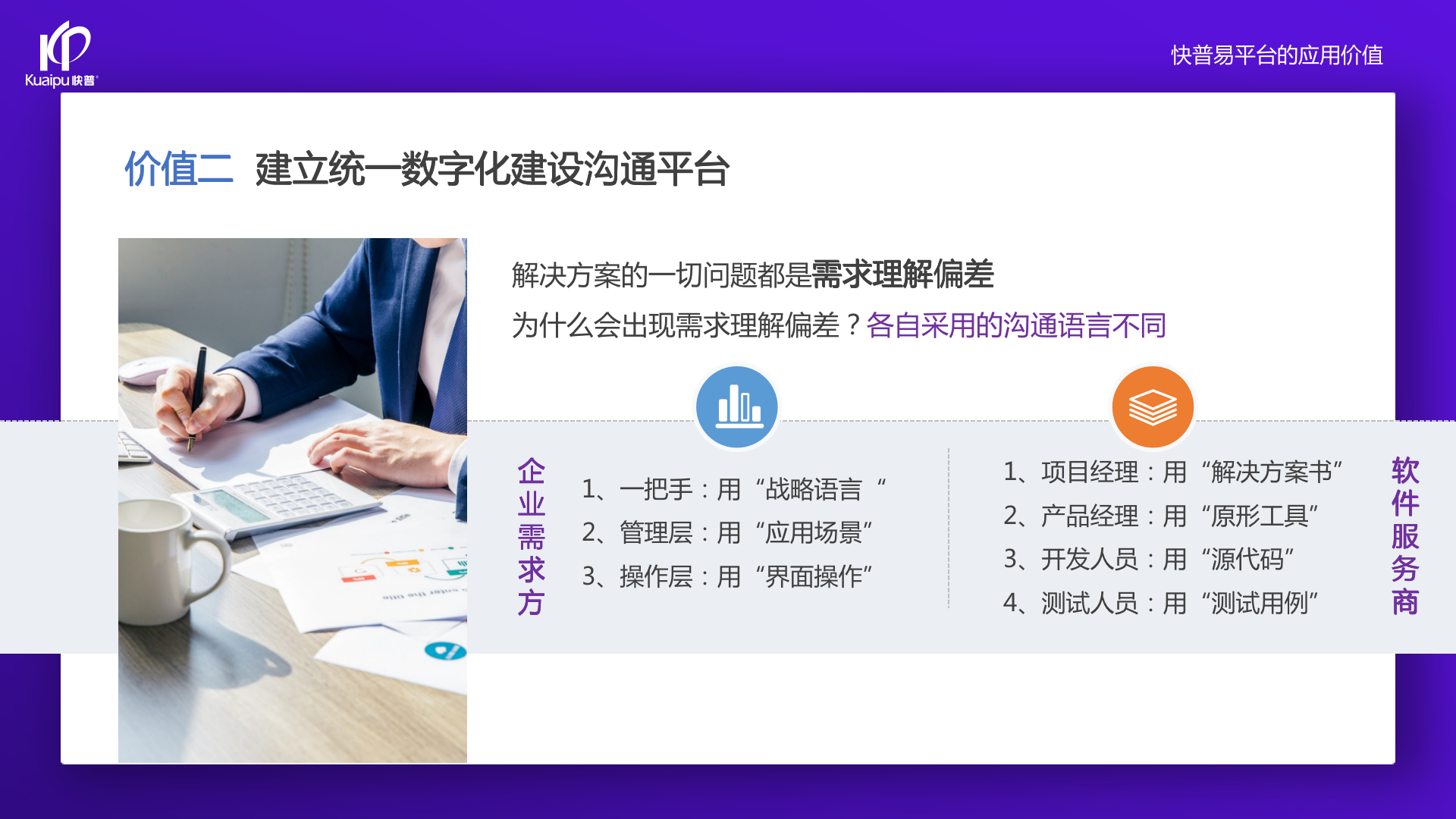 過(guò)去企業(yè)用的ERP系統(tǒng),都不能完全理解、看透它的邏輯。因?yàn)椴涣私膺壿?,就看不透,就用不好系統(tǒng)。快普經(jīng)歷了大量的客戶(hù),發(fā)現(xiàn)如果用戶(hù)理解系統(tǒng)邏輯,會(huì)用得更好,提的需求也更合理、更結(jié)構(gòu)化。但過(guò)去確實(shí)沒(méi)辦法讓所有普通用戶(hù)看懂源代碼。